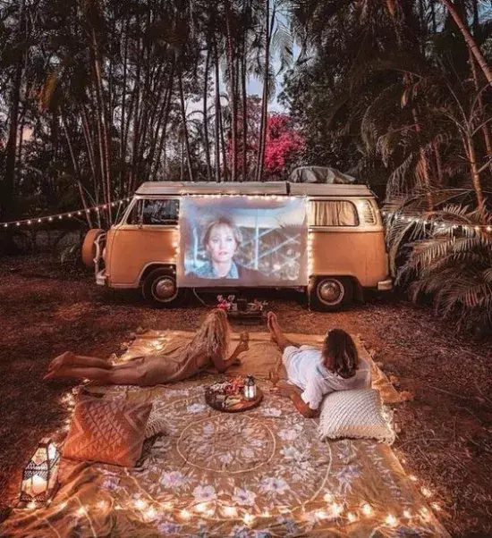 Want to take it a step further? Get a projector and watch the movie outdoors, on the side of your RV!